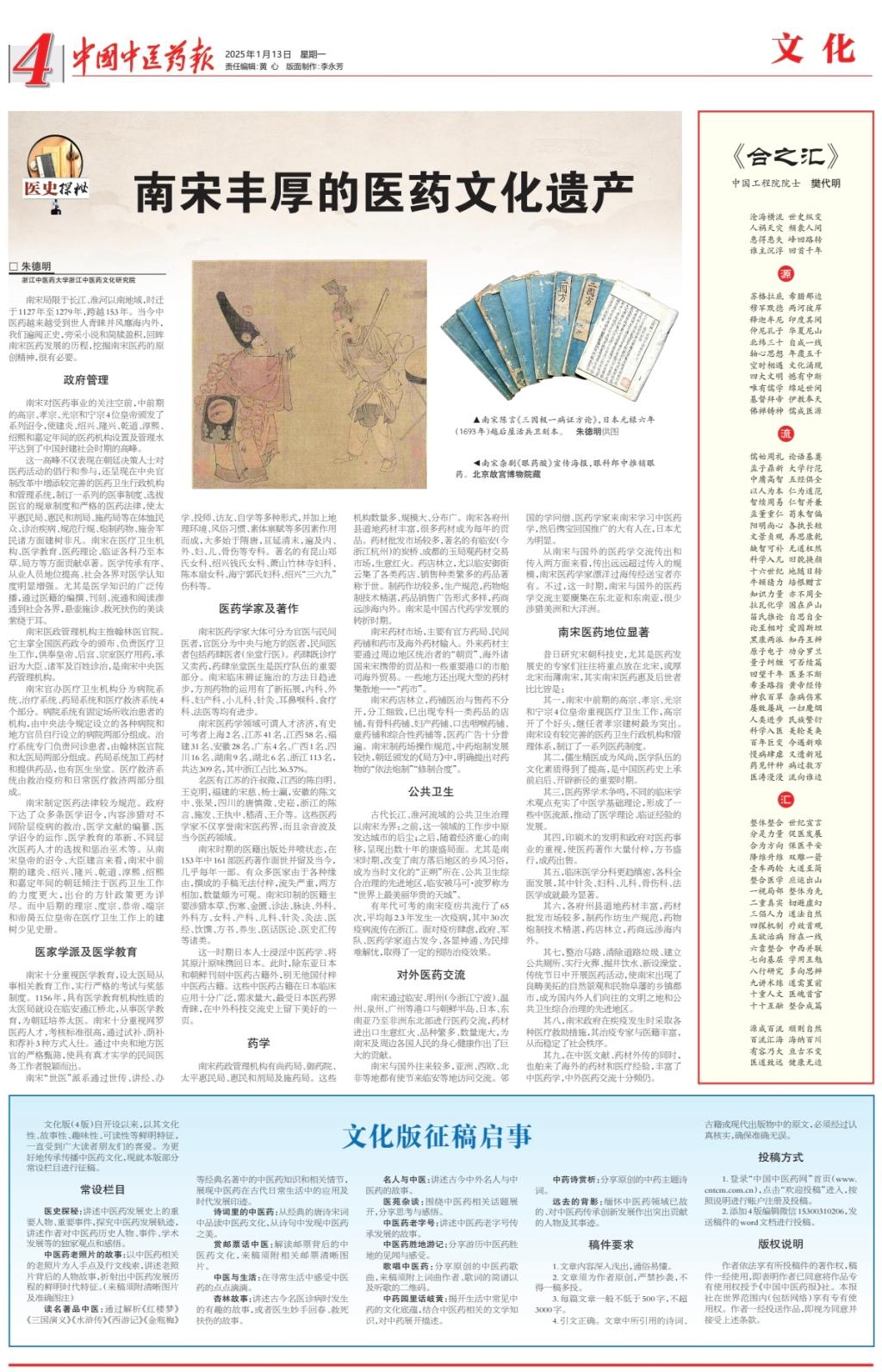 中国中医药报:南宋丰厚的医药文化遗产