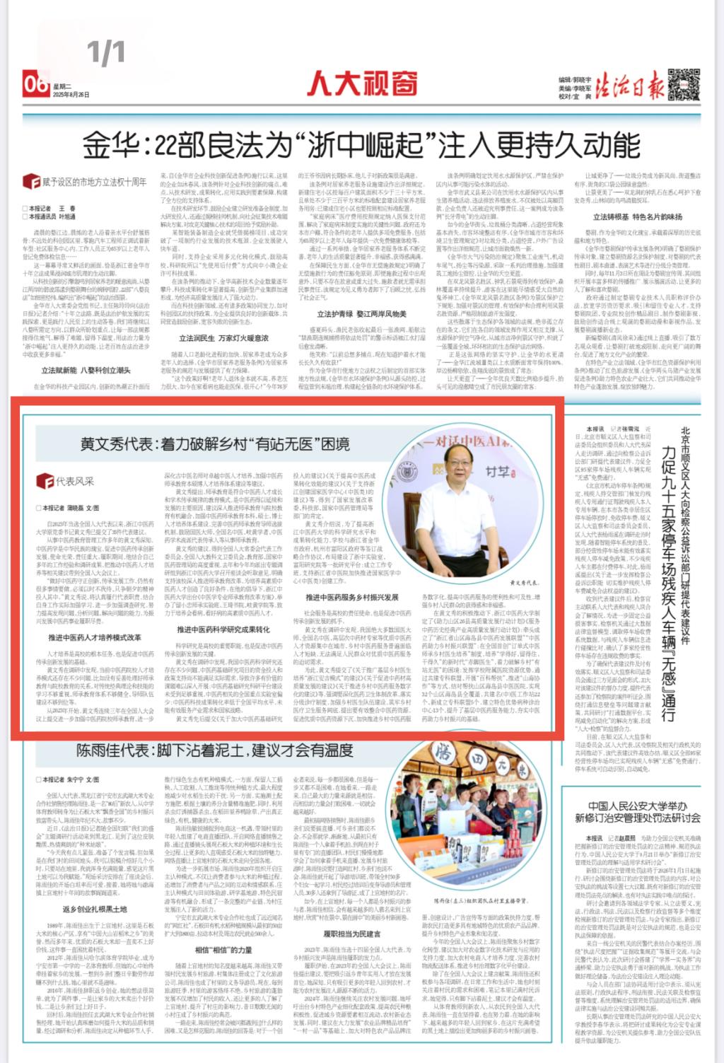 法治日报、法治浙江:黄文秀代表:着力破解乡村“有站无医”困境